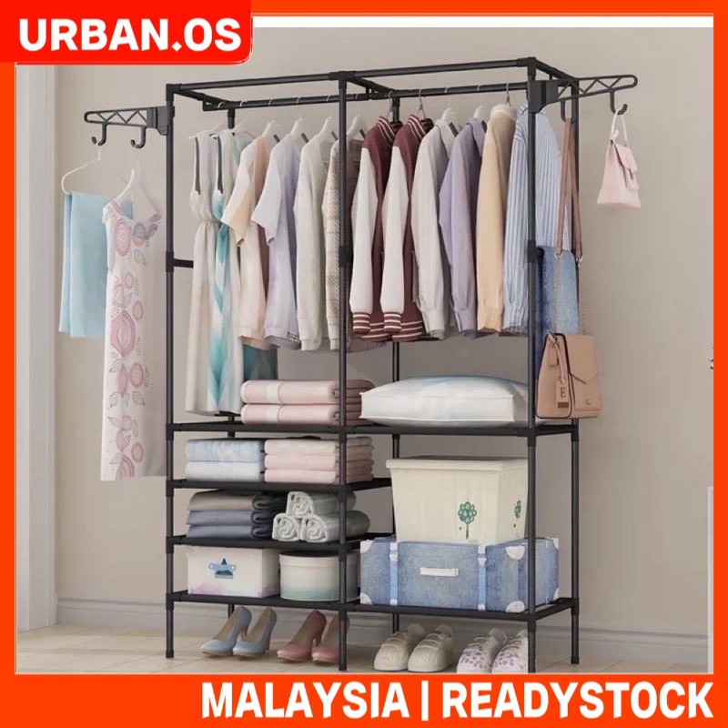 Rak Almari Besi Tahan Karat Besar Pelbagai Guna Penyidai Baju Rak Large Stainless Steel Wardrobe Storage Clothes Rack Shopee Malaysia